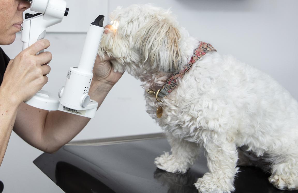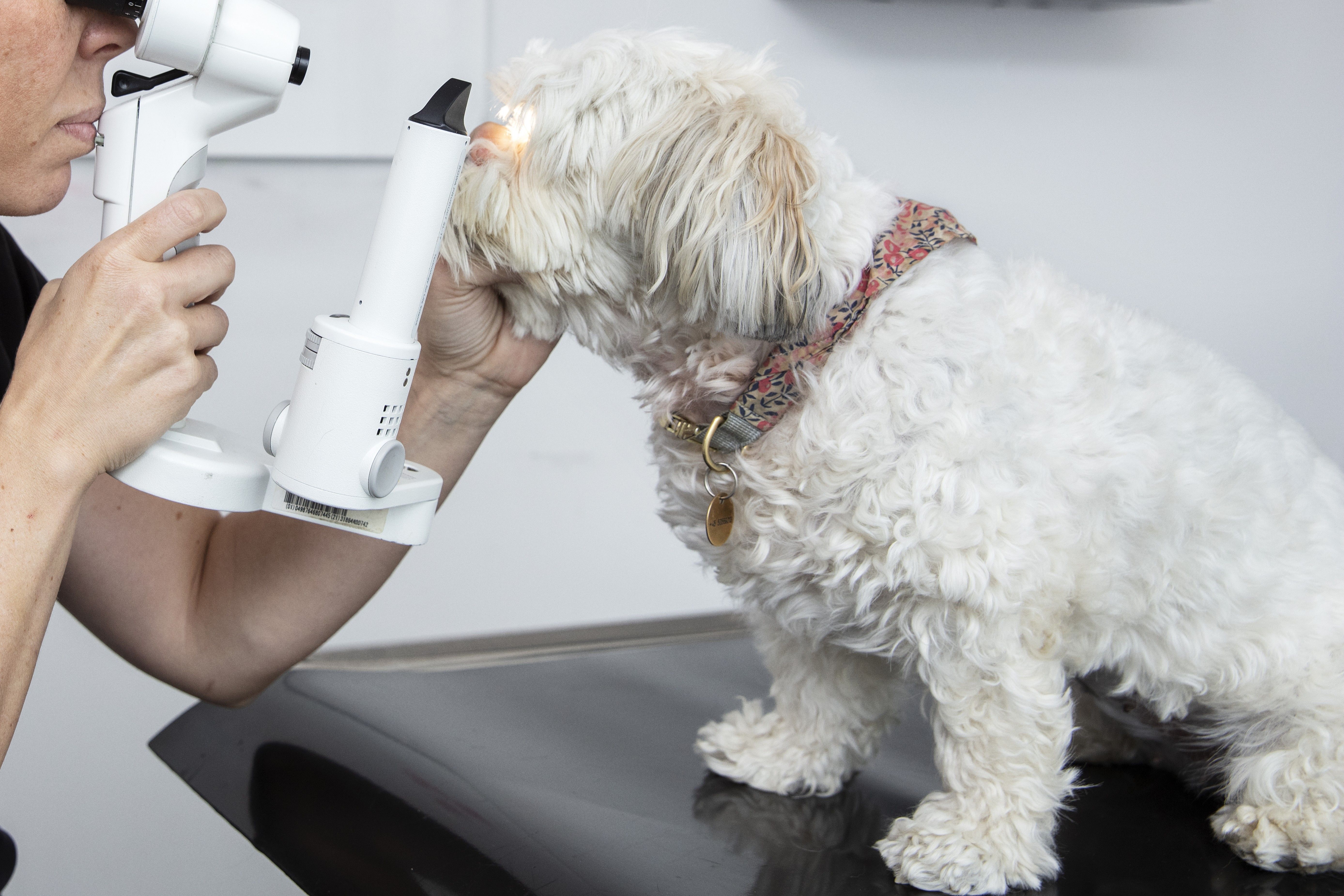 - Anamnese: unsere Tierärzt*innen werden zuerst eine genaue Anamnese erheben und Ihnen Fragen zur Vorgeschichte stellen, wie z.B.: Welche Symptome zeigt das Tier genau? Kneift es die Augen zusammen? Reibt es am Auge? Sind die Pupillen geweitet? Hat es Augenausfluss? Wirkt das Auge trüb? Wann sind die Symptome zum ersten Mal aufgetreten? Wie lange dauern sie inzwischen schon an? Liegen andere Erkrankungen vor? Nimmt Ihr Haustier Medikamente? Gibt es schon Befunde von anderen Kliniken oder Spezialist*innen (Blutbefunde, Röntgenbilder, usw.)?