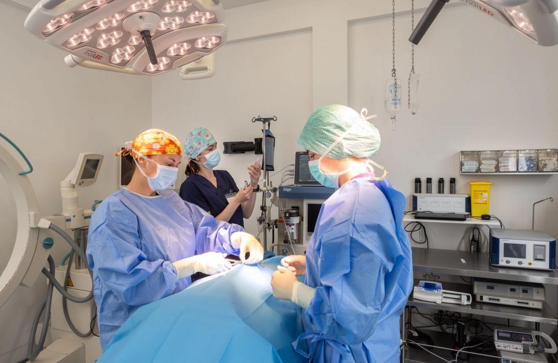 Für jede Operation sind Narkose und Schmerzmanagement unumgänglich (siehe Anästhesie und Schmerzmanagement). Aber keine Sorge – Ihr Haustier wird dabei natürlich von Anästhesist*innen und unserem erfahrenen tierärztlichen Personal überwacht. Im Normalfall können die Patienten am gleichen Tag noch nach Hause entlassen werden, nur in Ausnahmefällen kann es sein, dass eine stationäre Aufnahme über Nacht oder für einige Tage empfohlen wird. Das kann z.B. nach sehr großen und komplexen Operationen der Fall sein, bei denen die Patienten noch länger intensivmedizinisch überwacht werden müssen, bzw. wenn das Risiko für postoperative Komplikationen minimiert werden soll. Postoperative Komplikationen können z.B. Blutungen, Infektionen, Wundheilungsstörungen oder auch ein Aufbrechen der Nähte sein. Auch ein wirksames und individuell erstelltes Schmerzmanagement ist nach Operationen besonders wichtig – schmerzbedingtes Kratzen, Beißen oder Schlecken muss unbedingt vermieden werden.