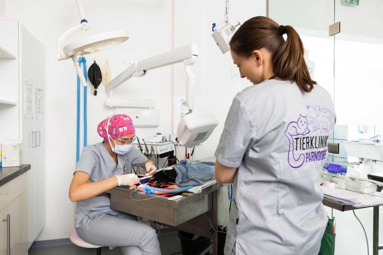 Für jede Operation sind Narkose und Schmerzmanagement unumgänglich (siehe Anästhesie und Schmerzmanagement). Aber keine Sorge – Ihr Haustier wird dabei natürlich von Anästhesist*innen und unserem erfahrenen tierärztlichen Personal überwacht. Im Normalfall können die Patienten am gleichen Tag noch nach Hause entlassen werden, nur in Ausnahmefällen kann es sein, dass eine stationäre Aufnahme über Nacht oder für einige Tage empfohlen wird. Das kann z.B. nach sehr großen und komplexen Operationen der Fall sein, bei denen die Patienten noch länger intensivmedizinisch überwacht werden müssen, bzw. wenn das Risiko für postoperative Komplikationen minimiert werden soll. Postoperative Komplikationen können z.B. Blutungen, Infektionen, Wundheilungsstörungen oder auch ein Aufbrechen der Nähte sein. Auch ein wirksames und individuell erstelltes Schmerzmanagement ist nach Operationen besonders wichtig – schmerzbedingtes Kratzen, Beißen oder Schlecken muss unbedingt vermieden werden.