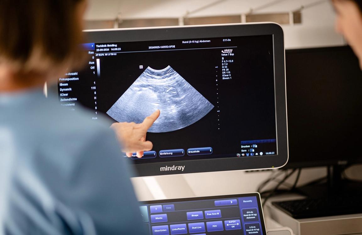 Die Ultraschalluntersuchung (= Sonographie), kurz Ultraschall, ist ein in der Veterinärmedizin häufig angewendetes bildgebendes Verfahren. Die Ultraschallwellen erzeugen dabei zweidimensionale Bilder der Organe.