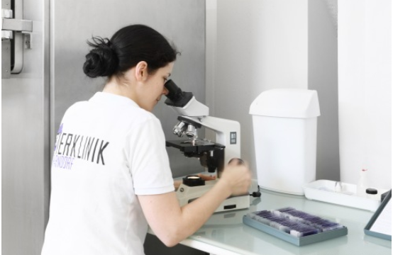 Mikroskopische Untersuchung von Zellpräparaten zur Diagnose von Erkrankungen.